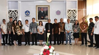 Dekan Faperta Unsrat, Ir Dedie Tooy, MSi, PhD menerima pimpinan Polimdo, kepala BPTP Sulut Dr Ir Ismail Maskromo, MS dan Dr Ir Henritte Jacob Roeroe, MS Staf Ahli Bappeda Sulut di fakultas, Jumat (25/03/2022).