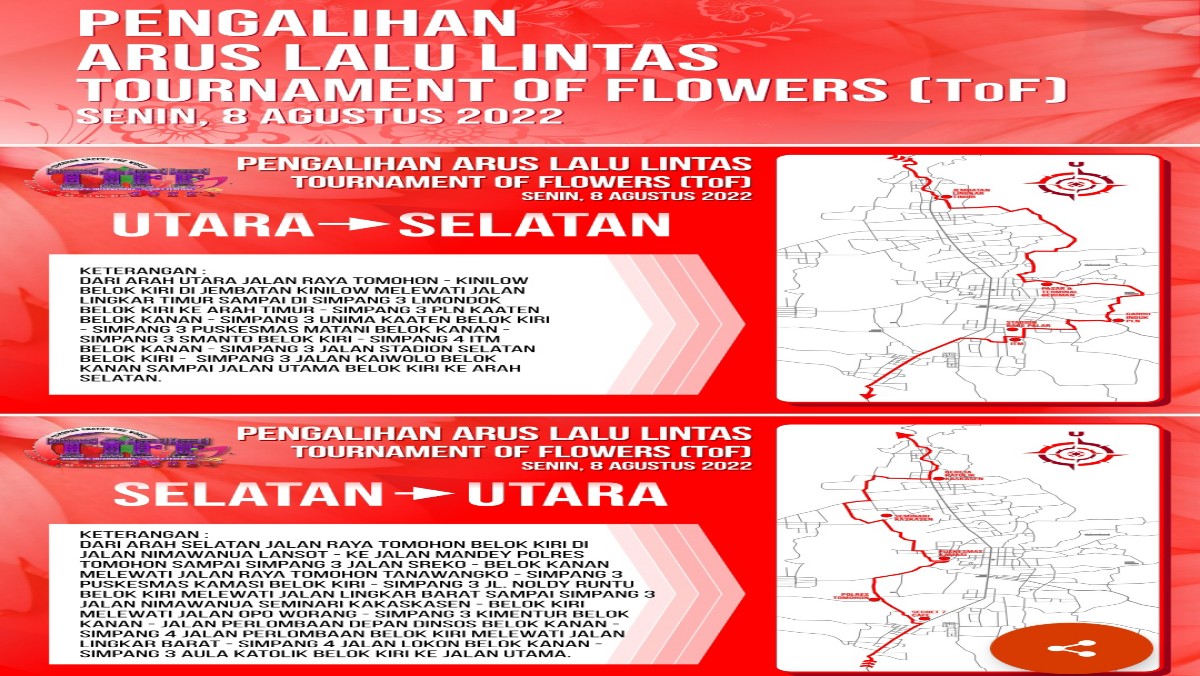 “Esok (Hari ini, red), jalan protokol Tomohon akan ditutup mulai pukul 06.00 WITA hingga 13.00 Wita,” kata Kapolres Tomohon Arian Primadanu Colibrito SIK MH melalui Kasat Lantas Polres Tomohon, Iptu Julio Jagratara Tampoi SH.