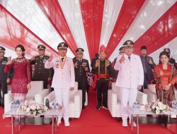 NPM, MINUT-Bupati Minahasa Utara Joune Ganda menjadi inspektur upacara peringatan HUT RI ke 77, Rabu (17/8) di pemkab Minut.