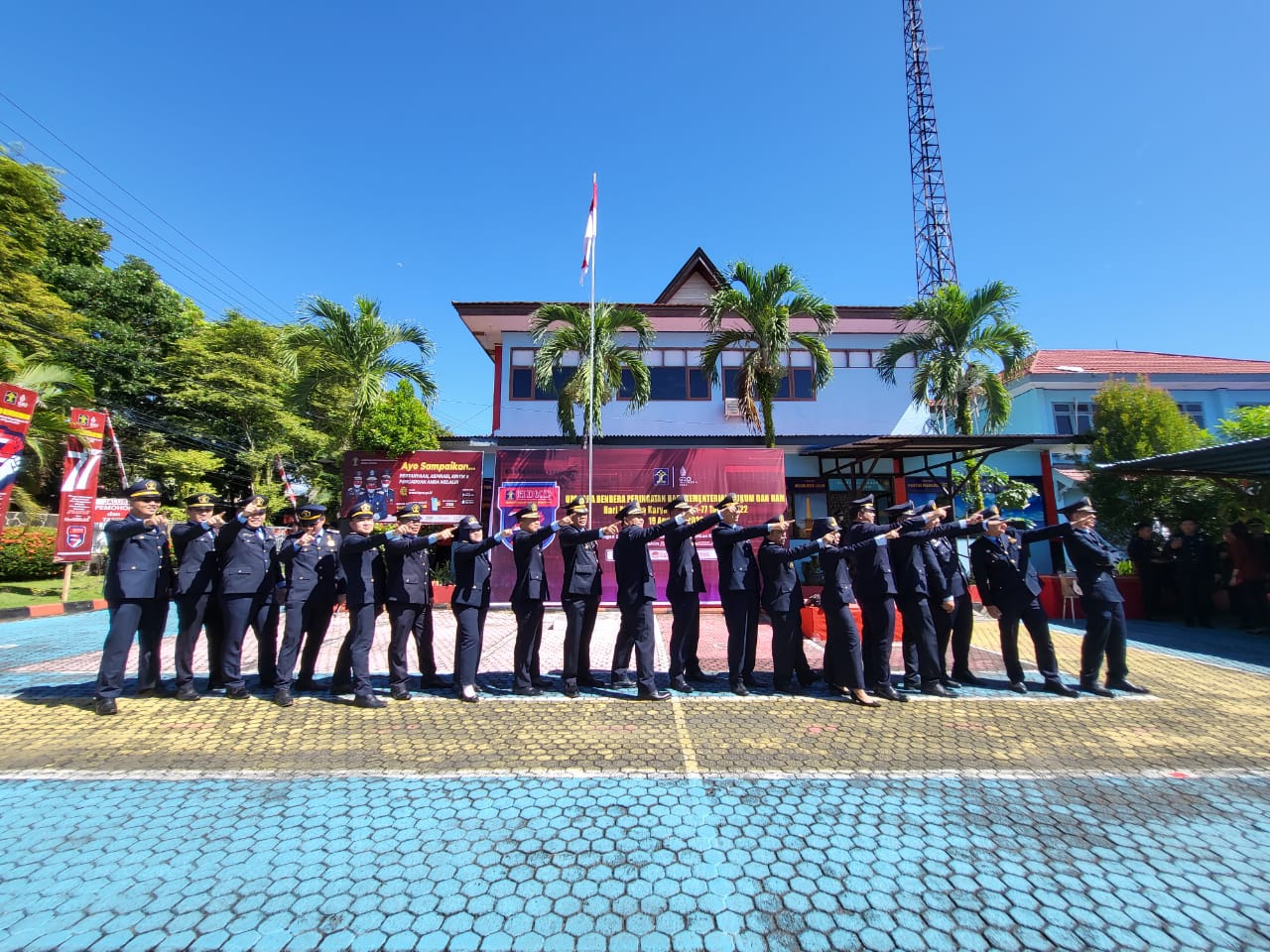 NPM, MANADO — Kepala Kantor Wilayah (Kanwil) Kementerian Hukum dan Ham (Kemenkumham) Sulawesi Utara (Sulut) Haris Sukamto memimpin upacara Hari Dharma Karya Dhika ke-77, di Kantor Imigrasi TPI 1 Manado, Jumat (19/8).