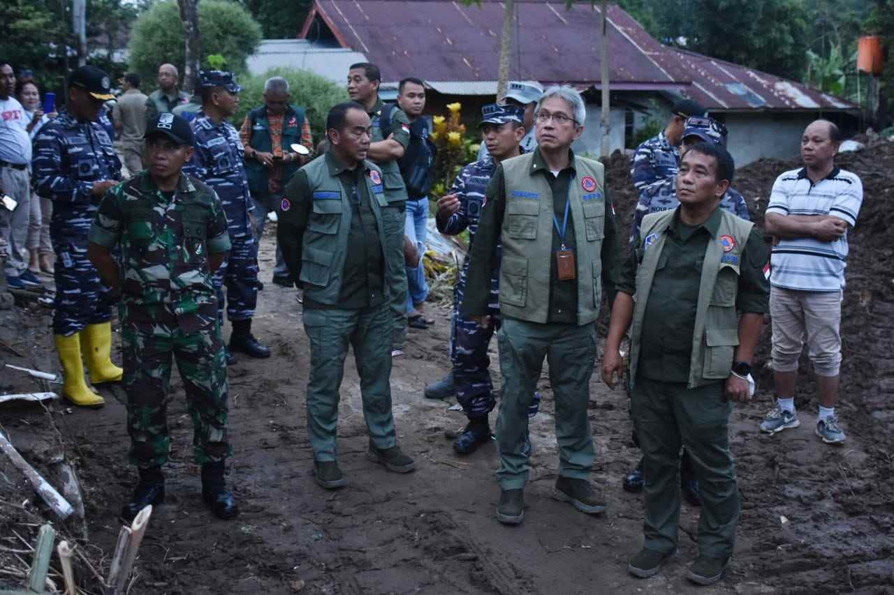 NPM, MANADO – Kepala Badan Nasional Penanggulangan Bencana (BNPB) RI, Letjen TNI Suharyanto S.Sos, M.M, beserta rombongan melihat langsung kondisi terkini pasca banjir dan longsor sekaligus memastikan penanganan tanggap darurat bencana di Manado, Sulawesi Utara, Sabtu (28/1/2023).