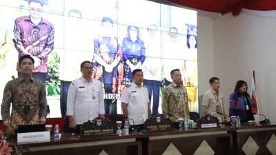 NPM, MITRA – Didampingi Kepala Divisi Keimigrasian Friece Sumolang Kepala Kantor Wilayah Kementerian Hukum dan HAM Sulawesi Utara Ronald Lumbuun membuka kegiatan Rapat Koordinasi Tim PORA Wilayah Kabupaten Minahasa Tenggara (Mitra), Kamis (03/02).