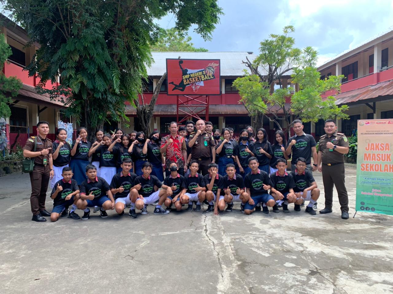 NPM, MANADO — Tim Jaksa Masuk Sekolah Kejaksaan Negeri Manado memberikan Penyuluhan Hukum di SMP Negeri 3 Manado. Kegiatan Jaksa Masuk Sekolah (JMS) ini diikuti oleh Guru dan perwakilan Pelajar kelas VIII SMP Negeri 3 Manado.