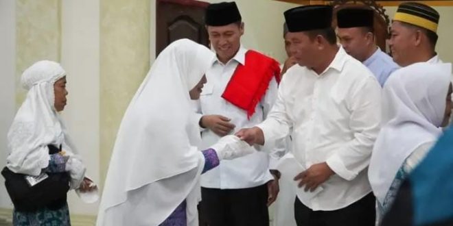 Bupati Bolsel H. Iskandar Kamaru, Spt, MSi didampingi Wakil Bupati Deddy Abdul Hamid melepas keberangkatan para Jamaah Calon Haji disaksikan para keluarga JCH.