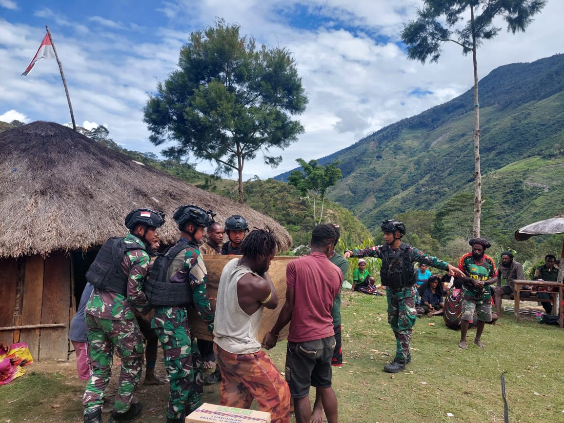 Posramil Tinggi Nambut juga memberikan santunan berupa sembako yang digunakan masyarakat saat melaksanakan ibadah duka almarhumah. Semua kami lakukan karena merasa seluruh masyarakat Papua merupakan saudara kami dan membantu masyarakat adalah kewajiban kami sebagai Prajurit TNI Angkatan Darat terlebih dalam penugasan disini.