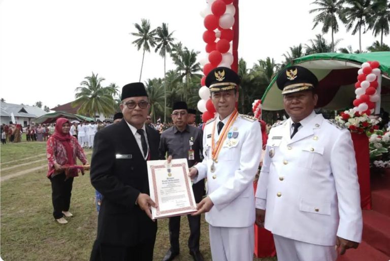 Usai upacara, Bupati Iskandar menyerahkan piagam penghargaan kepada pemenang lomba desa dan menyerahkan sertifikat kepada masyarakat.