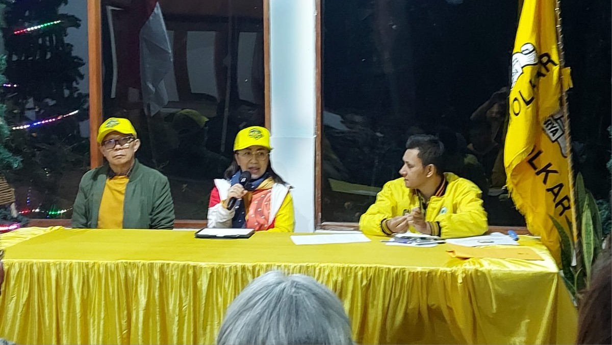 Terbaru, Ketua Dewan Pimpinan Daerah (DPD) II Partai Golkar Tomohon, Ir Miky Junita Linda Wenur MAP (MJLW) memimpin rapat konsolidasi, di Terung LW, Kelurahan Pangolombian, Tomohon Selatan, Minggu (27/8/2023).