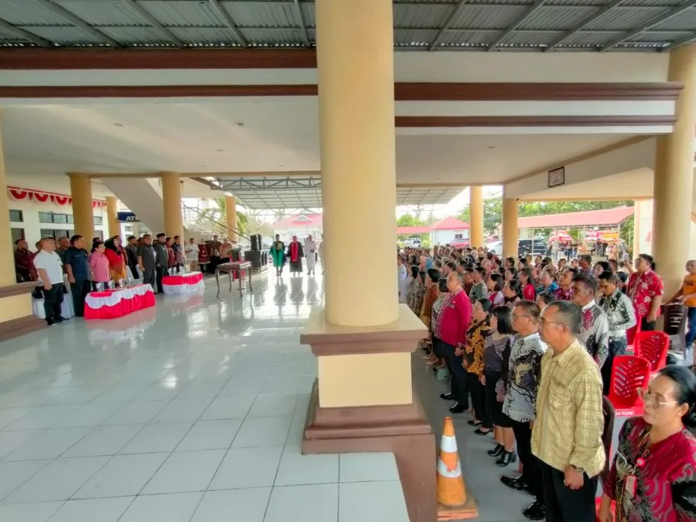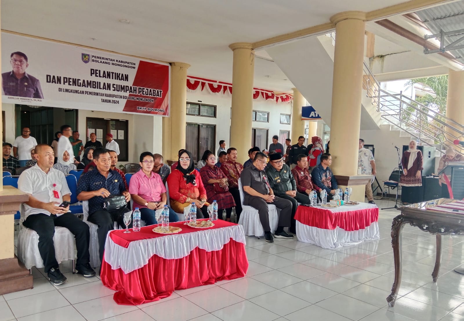Kegiatan yang berlangsung di depan Kantor Bupati itu, turut dihadiri Pj Sekda Bolmong Abdullah Mokoginta, para Asisten, pimpinan OPD dan para pejabat yang dilantik.