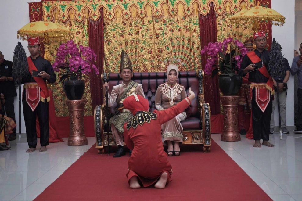 Saat tiba di Rumah Dinas, Penjabat Bupati Bolmong Jusnan Mokoginta, langsung disuguhkan dengan beberapa prosesi adat penjemput tamu, mulai dari Itum-Itum, tarian Tuitan, dan tarian Kabela.