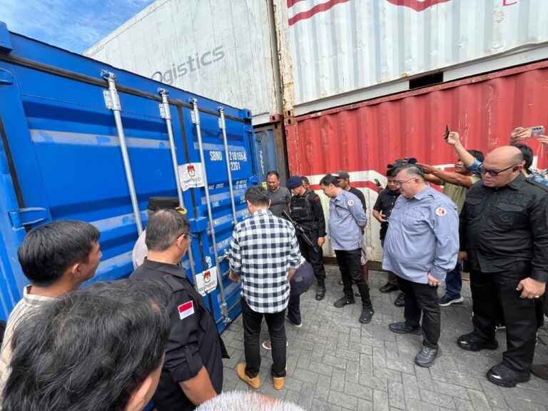 NPM, BITUNG-Bawaslu Provinsi Sulawesi Utara melakukan pengawasan logistik suara untuk pemilihan Gubernur yang tiba di pelabuhan Bitung, Kamis (17/10/2024).