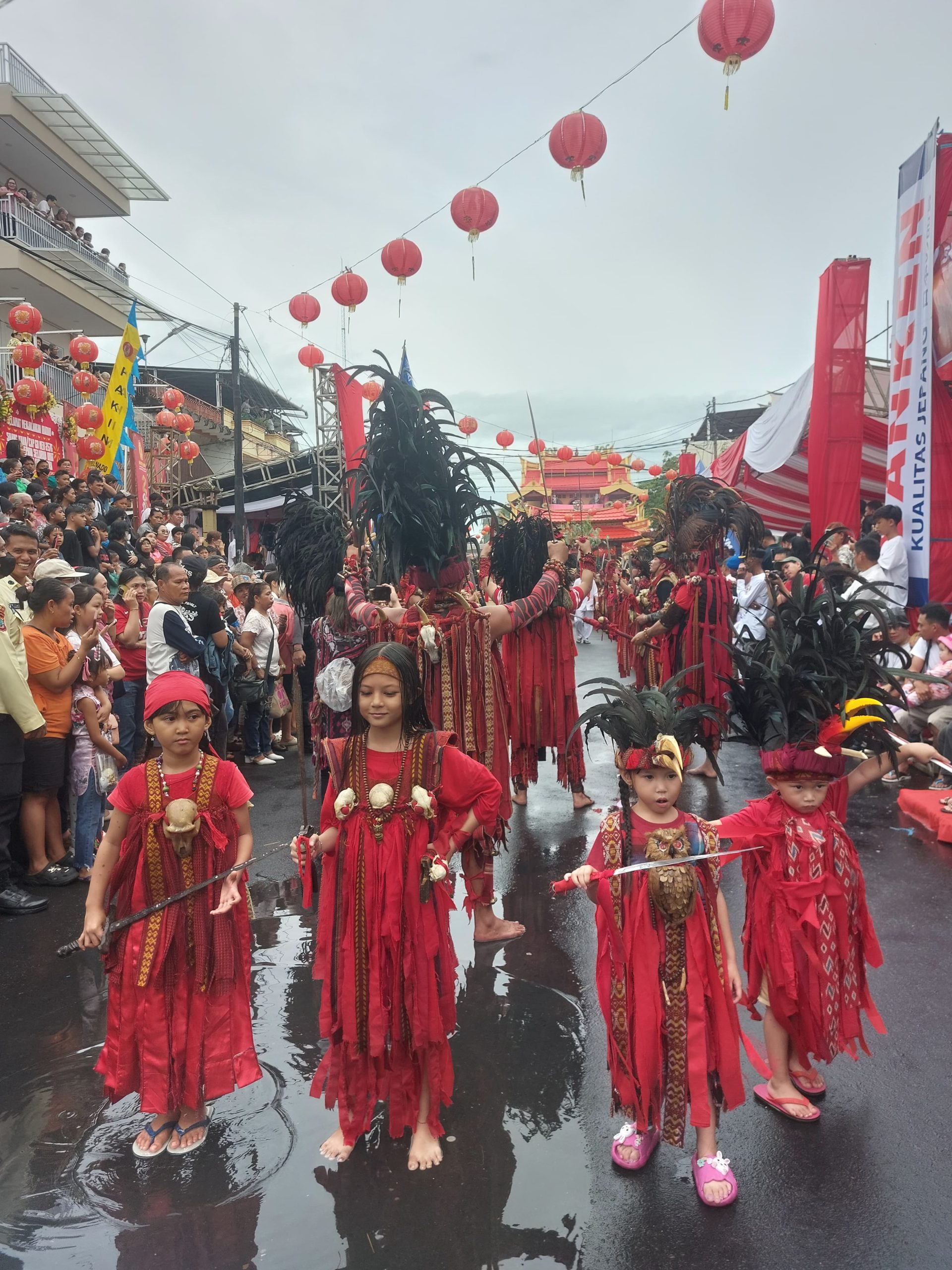 Selain atraksi Barongsai, kendaraan hias, liong dan tang sin turut juga dimeriahkan oleh tarian Kabasaran khas minahasa.