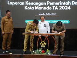 Untuk Kota Manado, (LHP) atas (LKPD) Tahun Anggaran 2024 diterima oleh Ketua (DPRD) Kota Manado didampingi Wali Kota dan Wakil Walikota Manado setelah terlebih dahulu mendatangani berita acara penyerahan (LHP).