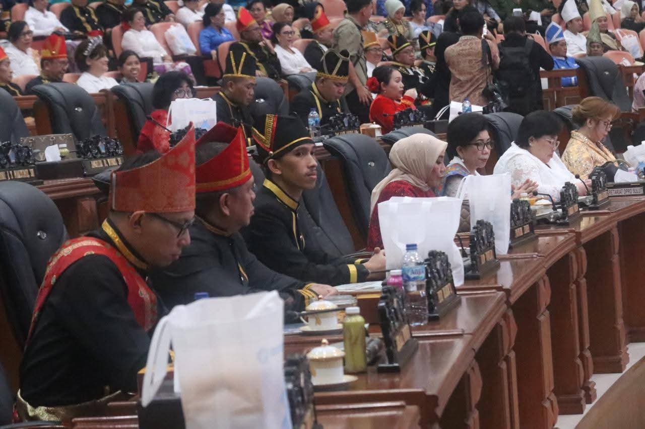 Paripurna dihadiri langsung Gubernur Sulut Yulius Selvanus, Wakil Gubernur Victor Mailangkay, Plt Sekprov Tahlis Gallang, serta Forkopimda.