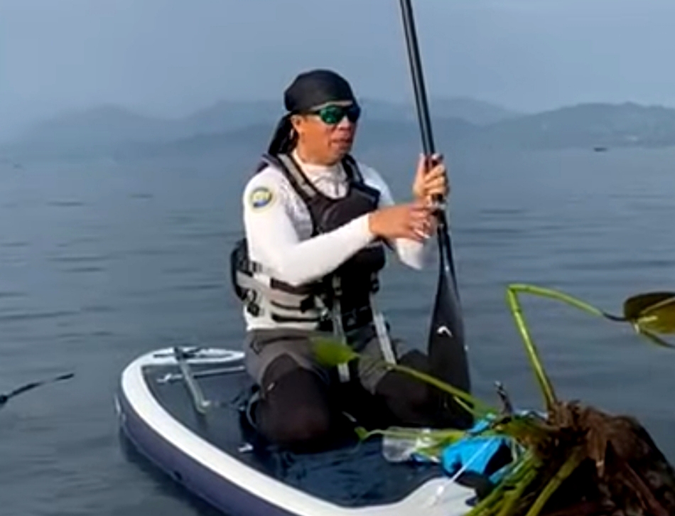 “Ayo kita kampanyekan Satu Boat, Satu Eceng,” ajak Drevy saat menjajal danau Tondano, Sabtu (4/10/2025).