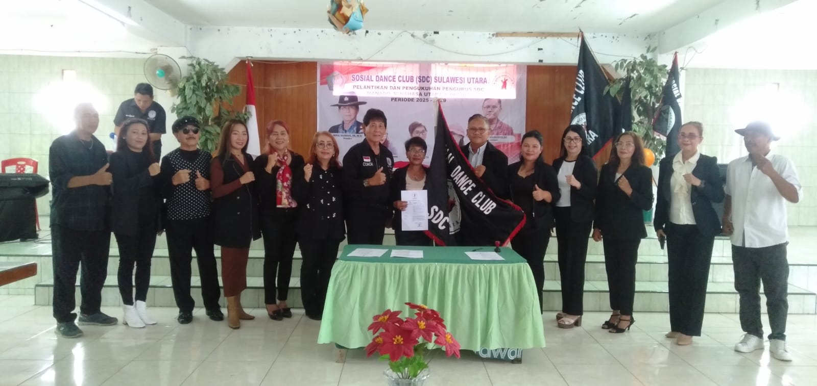 NPM, Minut – Sosial Dance Club (SDC) Sulawesi Utara resmi melantik dan mengukuhkan pengurus baru SDC untuk Kota Manado, Kabupaten Minahasa Utara, dan Kota Bitung masa bakti 2025–2029.