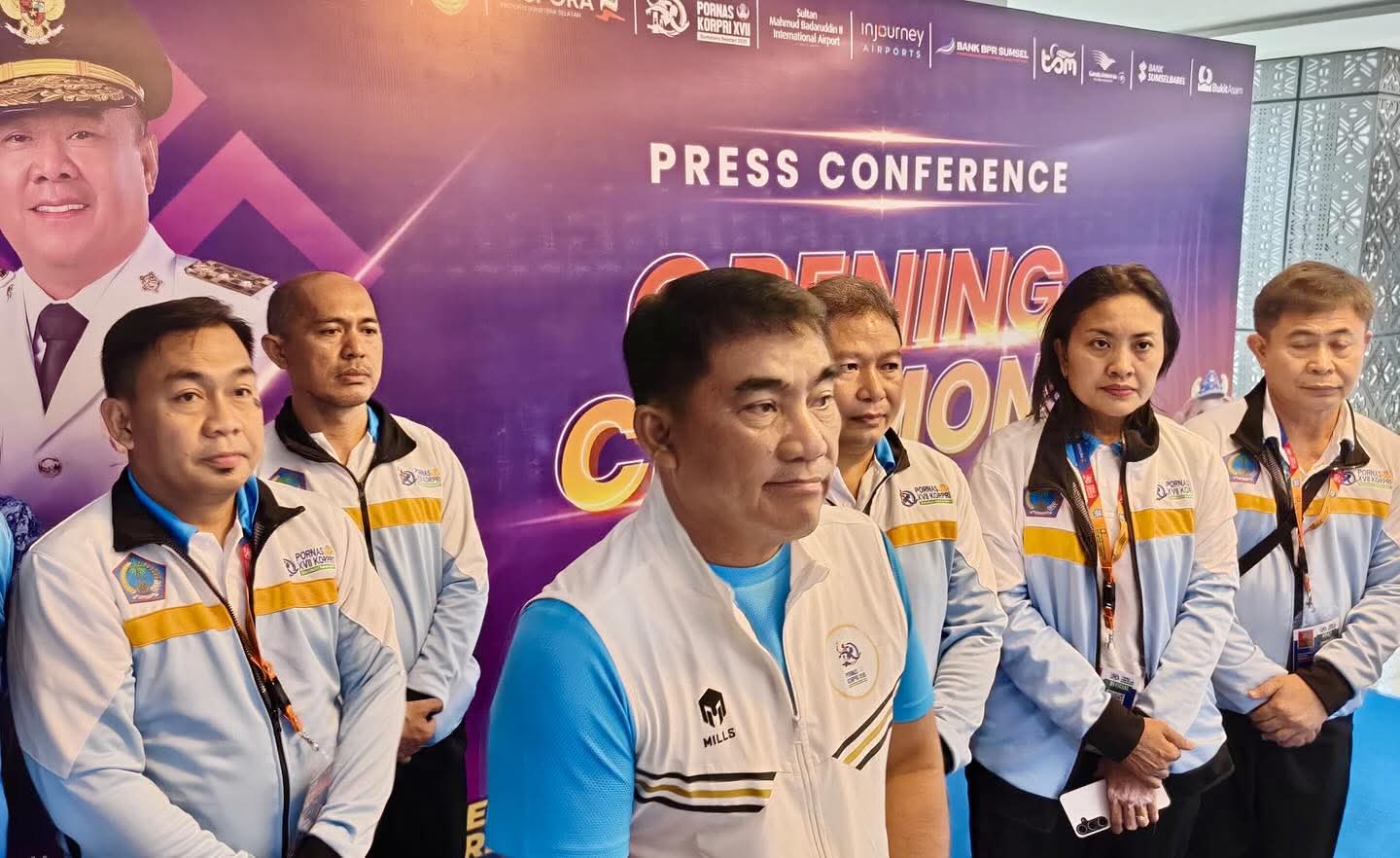 Gubernur Sulut Yulius Selvanus saya menghadiri jumpa pers pada pembukaan Pornas Korpri di Palembang, Minggu (5/10/2025). (ist)