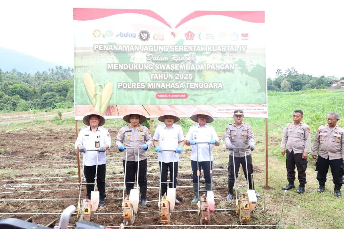 NPM, Mitra – Polres Mitra bersama Pemerintah menggelar kegiatan penanaman jagung serentak kuartal IV tahun 2025 yang berlangsung di kompleks Rumah Dinas Kapolres Mitra, Rabu (8/10/2025).