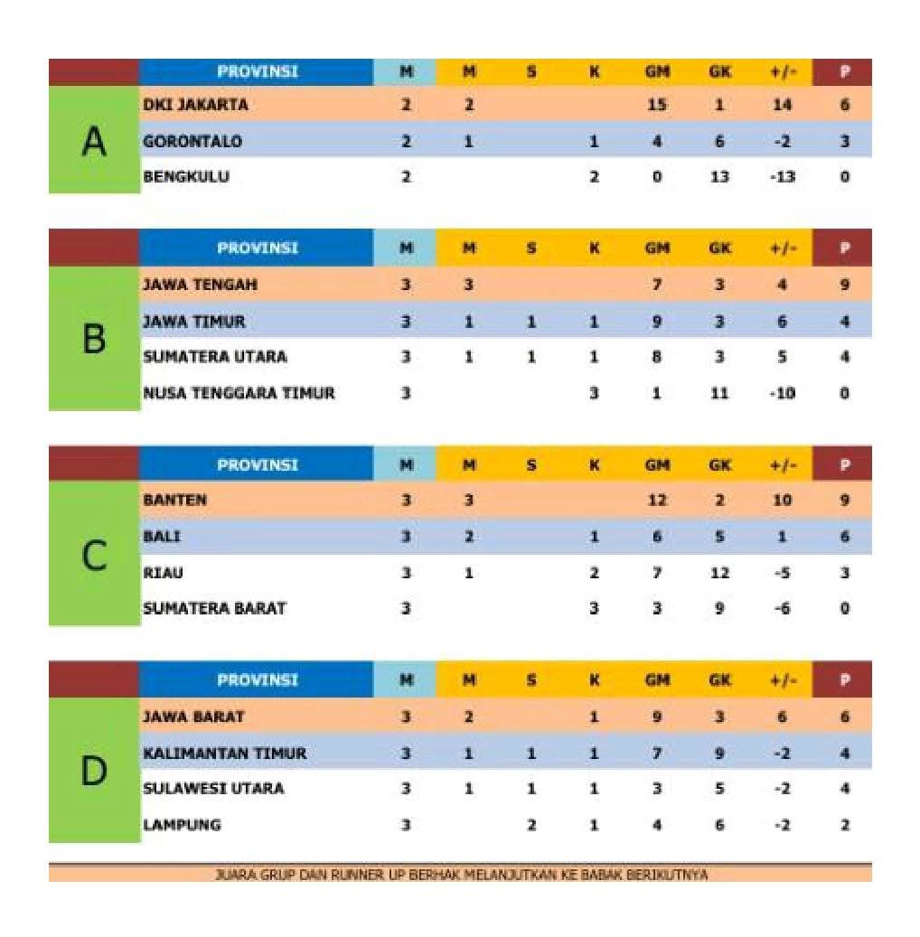Dari hasil tiga pertandingan itu, Sulawesi Utara gagal melanjutkan pertandingan di babak selanjutnya.