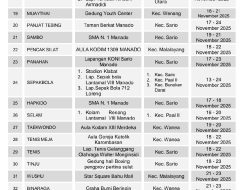 NPM, MANADO- Gelaran Pekan Olahraga Provinsi (Porprov) segera dihelat dari tanggal 17-23 November 2025. Pun gelaran ini akan mempertandingkan 34 Cabang Olahraga (Cabor)  serta 405 Nomor Pertandingan yang tersebar di beberapa Wilayah Kecamatan yang ada di Kota Manado.