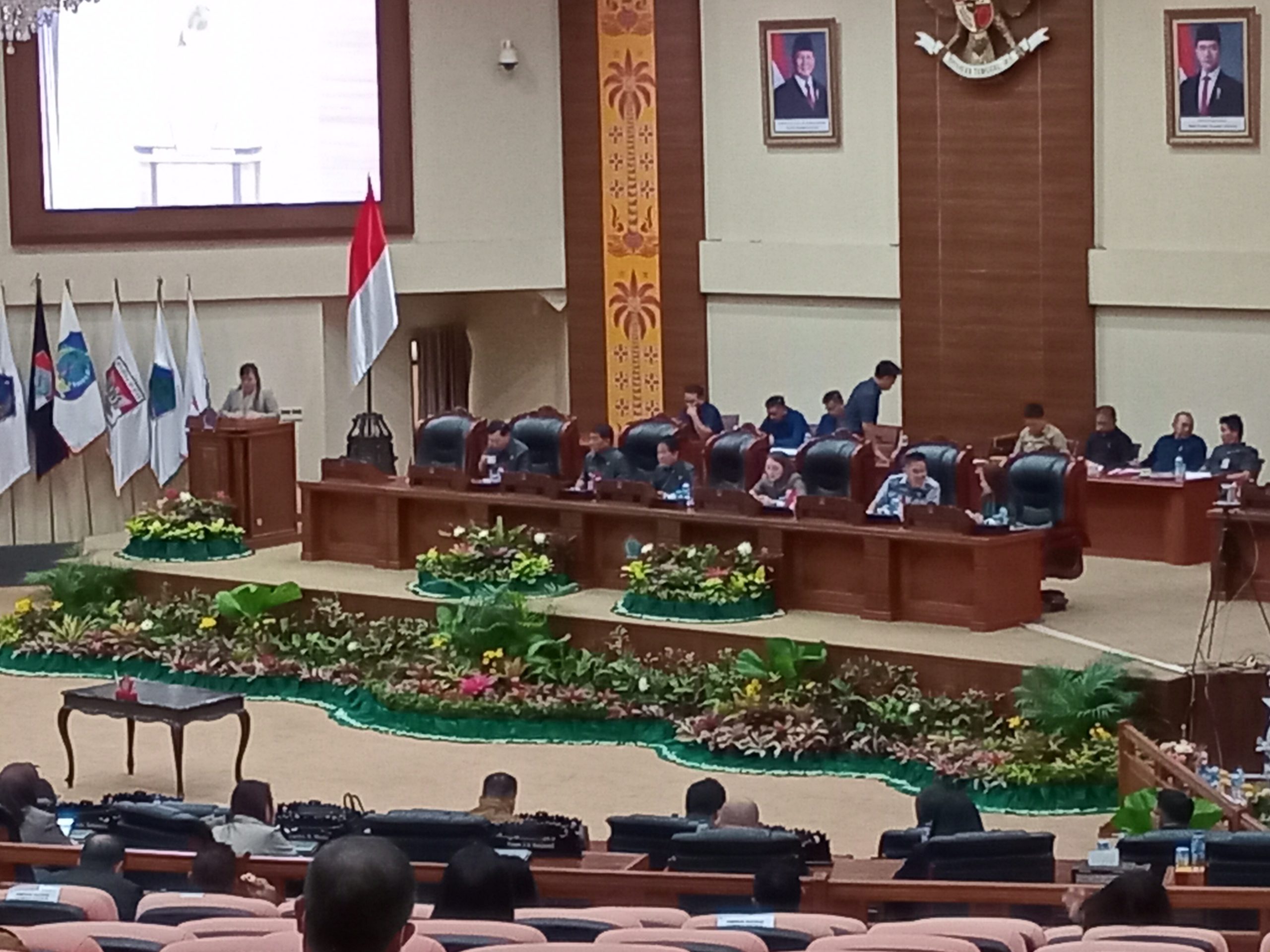 Paripurna dipimpin Ketua DPRD Fransiscus Andi Silangen didampingi Wakil Ketua Michaela Paruntu, Royke Anter dan