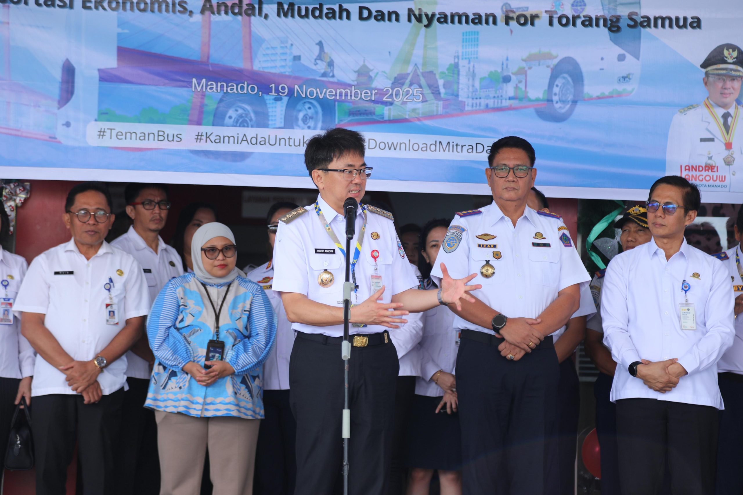 “Kegiatan ini merupakan layanan angkutan massal berbasis jalan dengan Skema Buy The Service (BTS) yang menandai dimulainya layanan operasional transportasi publik modern yang diharapkan mampu meningkatkan kualitas mobilitas masyarakat sekaligus memperkuat peran pemerintah kota dalam menyediakan sarana transportasi yang aman, nyaman serta berkualitas bagi masyarakat Manado.” ungkap Walikota Andrei Angouw.