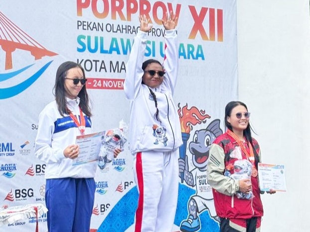 NPM, Manado – Atlet selam putri Rabia Salay menambah pundi medali bagi Kontingen Manado di ajang Pekan Olah Raga Provinsi (Poprov) XII tahun 2025.
