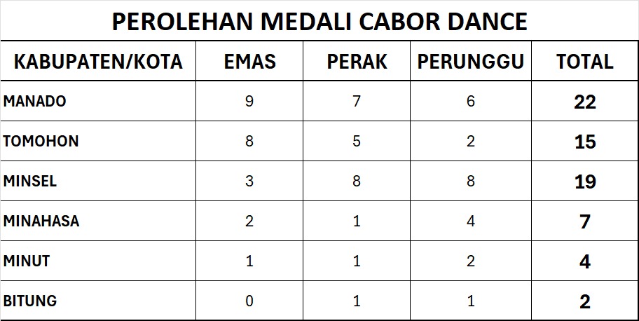 NPM, Manado – Tuntas sudah kejuaraan dancesport di ajang Pekan Olahraga Provinsi (PORPROV) XII Sulut.