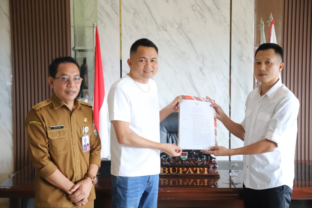 NPM, Mitra – Bupati Mitra Ronald Kandoli menyerahkan Surat keputusan (SK)Direktur Utama Perusahaan Daerah Air Minum (PDAM) kepada Falkau Mamahit, di ruang kerja Bupati Mitra. Senin (24/11/2025).