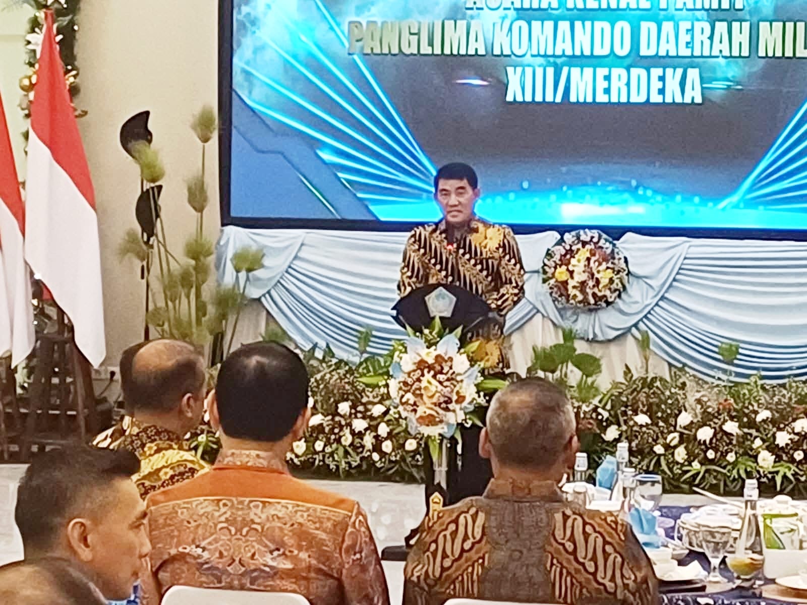 NPM, Manado – Gubernur Sulawesi Utara Yulius Selvanus menghadiri acara Kenal Pamit Panglima Komando Daerah Militer (Pangdam) XIII/Merdeka di Wisma Negara Gubernuran Bumi Beringin, Manado, Sabtu (13/12/2025) malam.
