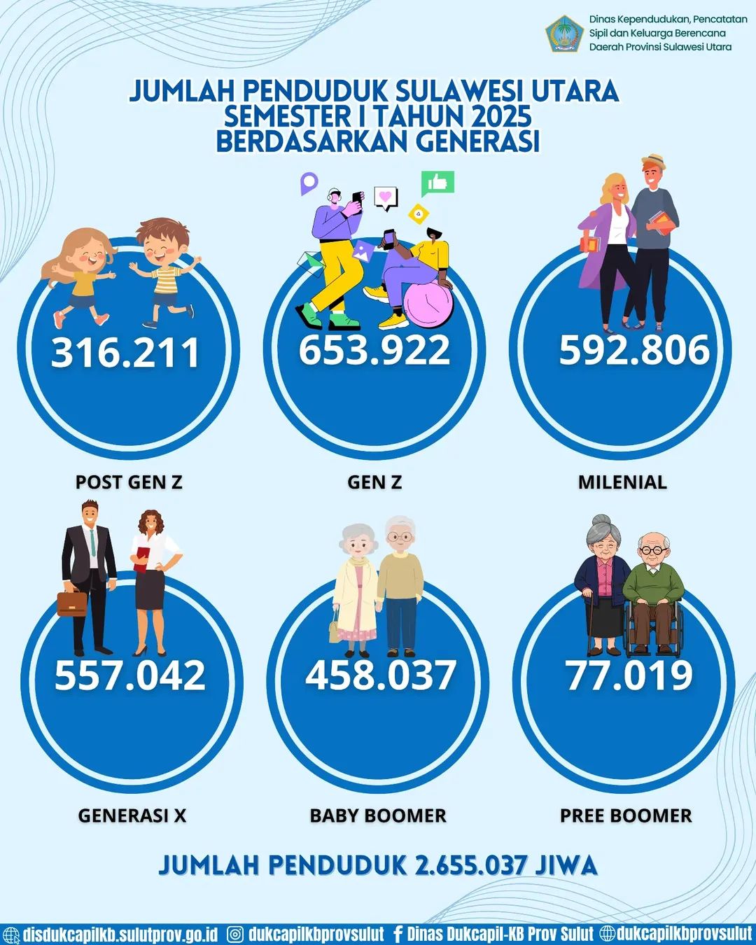 NPM, Manado – Potret generasi di Provinsi Sulawesi Utara tahun 2025 menunjukkan keberagaman yang signifikan, dengan total penduduk 2.655.037 jiwa.
