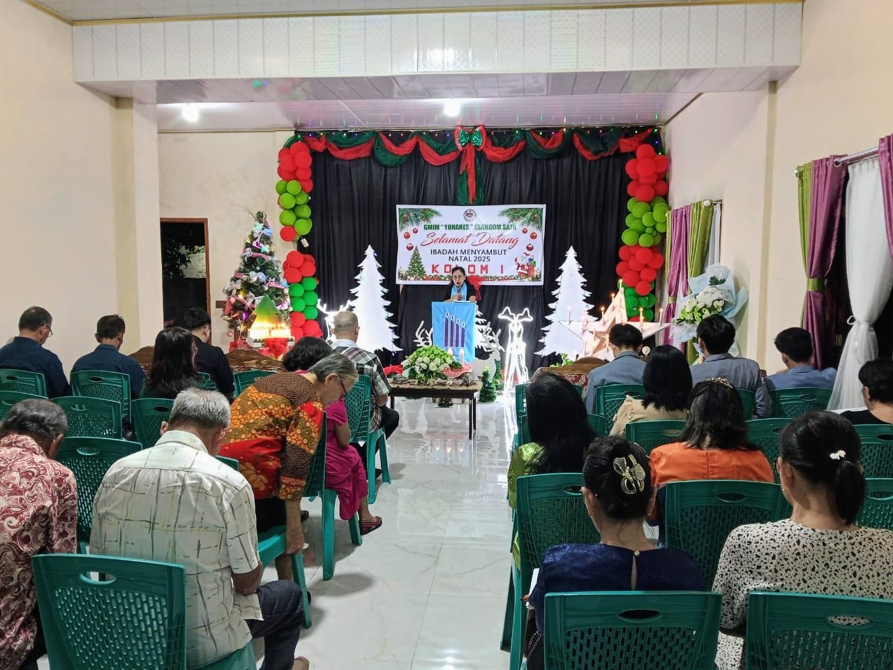 Suasana penuh suka cita terpancar bagi para jemaat kolom 1 sampai 7 di Ruang Serba Guna Gereja, Senin (15/12/2025).