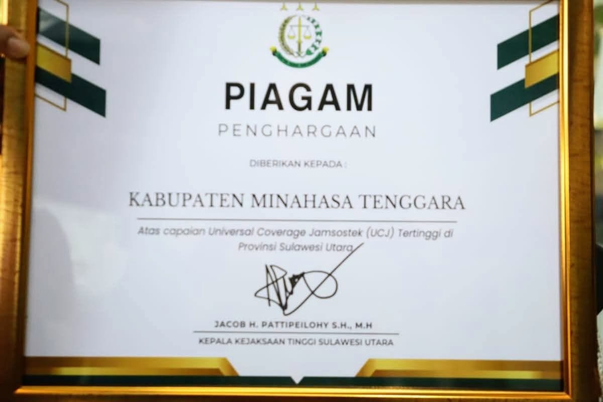 Penghargaan ini diserahkan oleh Kepala Kejaksaan Tinggi Sulawesi Utara, Jacop Hendrik Pattipeylohi SH MH dalam kegiatan Monitoring dan Evaluasi Universal Coverage Jaminan Sosial Ketenagakerjaan (Jamsostek) Provinsi Sulawesi Utara di Hotel Sintesa Peninsula, Manado, Kamis (18/12/2025).