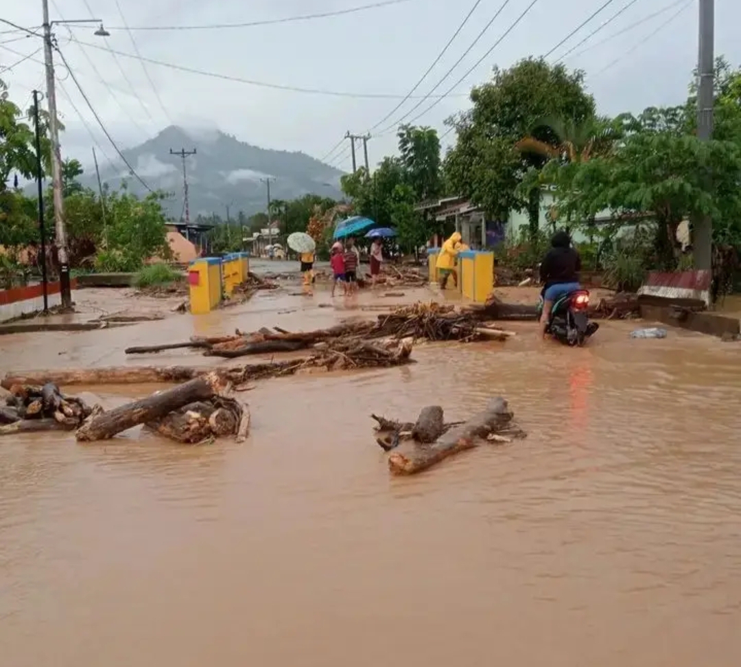 Amatan media ini, banjir tersebut berasal dari luapan sungai disertai material seperti lumpur, batu dan kayu yang menyumbat sungai hingga menggenangi jalan dan pemukiman warga.