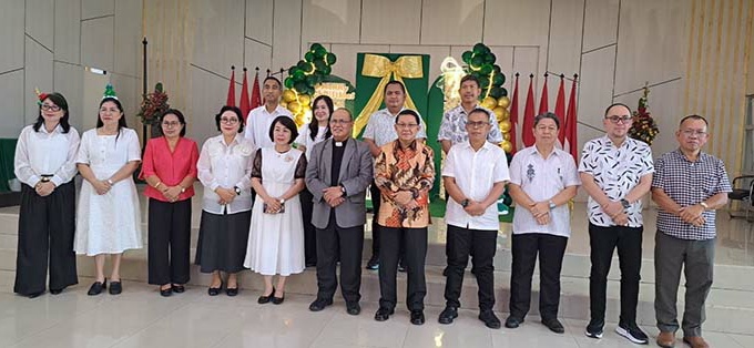 NPM, MANADO – Dr Denny Mangala mewakili Gubernur Sulawesi Utara Mayjen TNI Yulius Selvanus, menghadiri Ibadah Natal Dinas Pendidikan Daerah Sulut di aula Dikda Sulut, Jumat (19/12/2025).