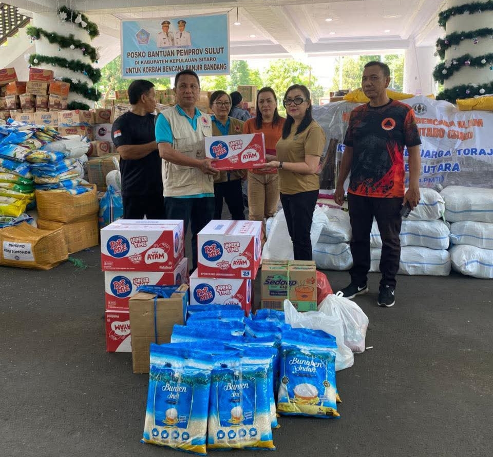 Penyerahan bantuan dilaksanakan pada Jumat 9 Januari 2026 di Posko Bantuan Pemerintah Provinsi Sulawesi Utara di Kantor Gubernur Sulawesi Utara.
