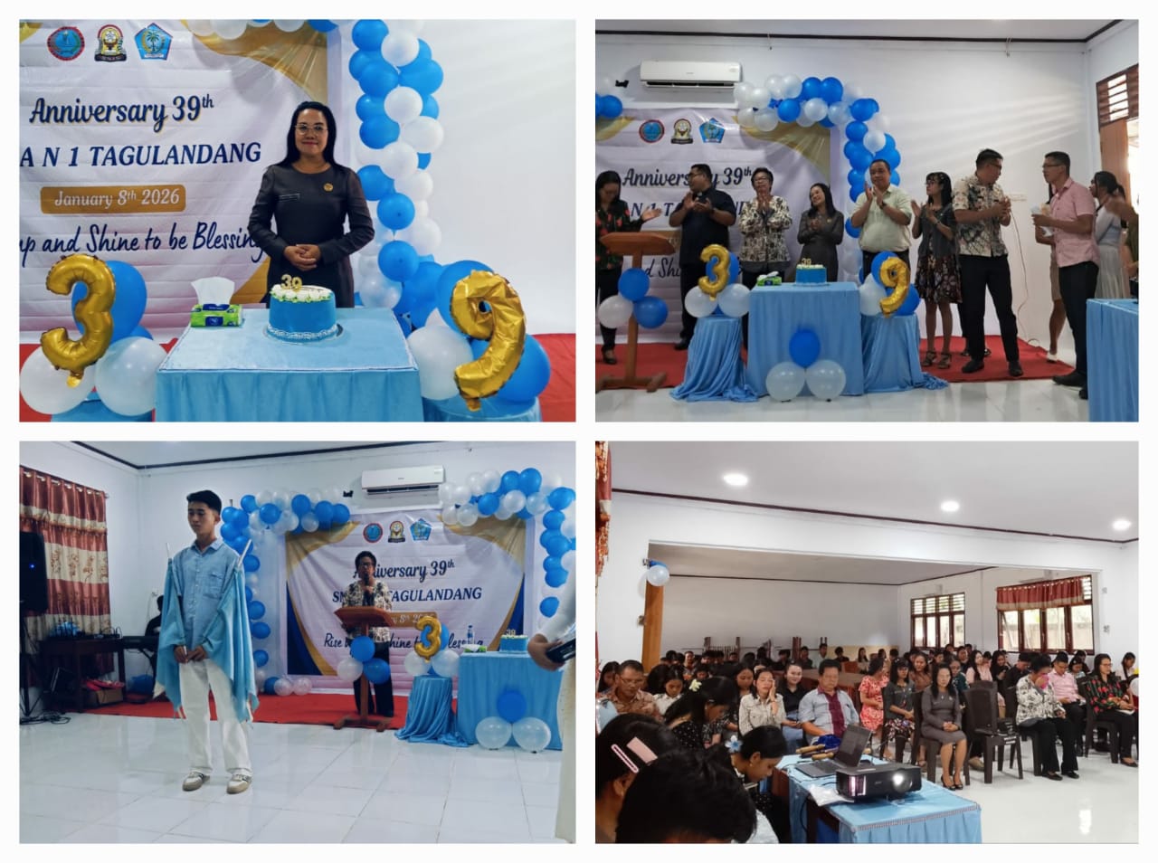 “Puji syukur kepada Tuhan karena keluarga besar SMA Negeri 1 Tagulandang boleh merayakan hari ulang tahun sekolah yang ke-39,” ungkap Kepsek Yenita Misa.