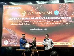 Penyerahan LHP dilakukan langsung oleh Kepala BPK RI Perwakilan Sulawesi Utara, Bombit Agus Mulyo, di Kantor BPK RI Perwakilan Sulut, Selasa (13/1/2026).