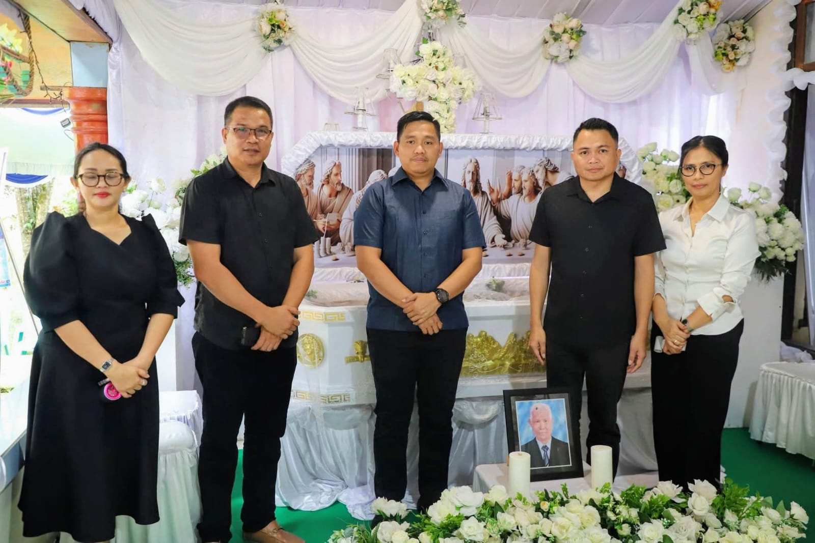 NPM Mitra – Bupati Minahasa Tenggara, Ronald Kandoli bersama Kapolres Minahasa Tenggara AKBP Handoko Sanjaya SIK MHan melayat ke rumah duka atas berpulangnya Serda (Purn) Mar Jonas Hendrik Lalandos.