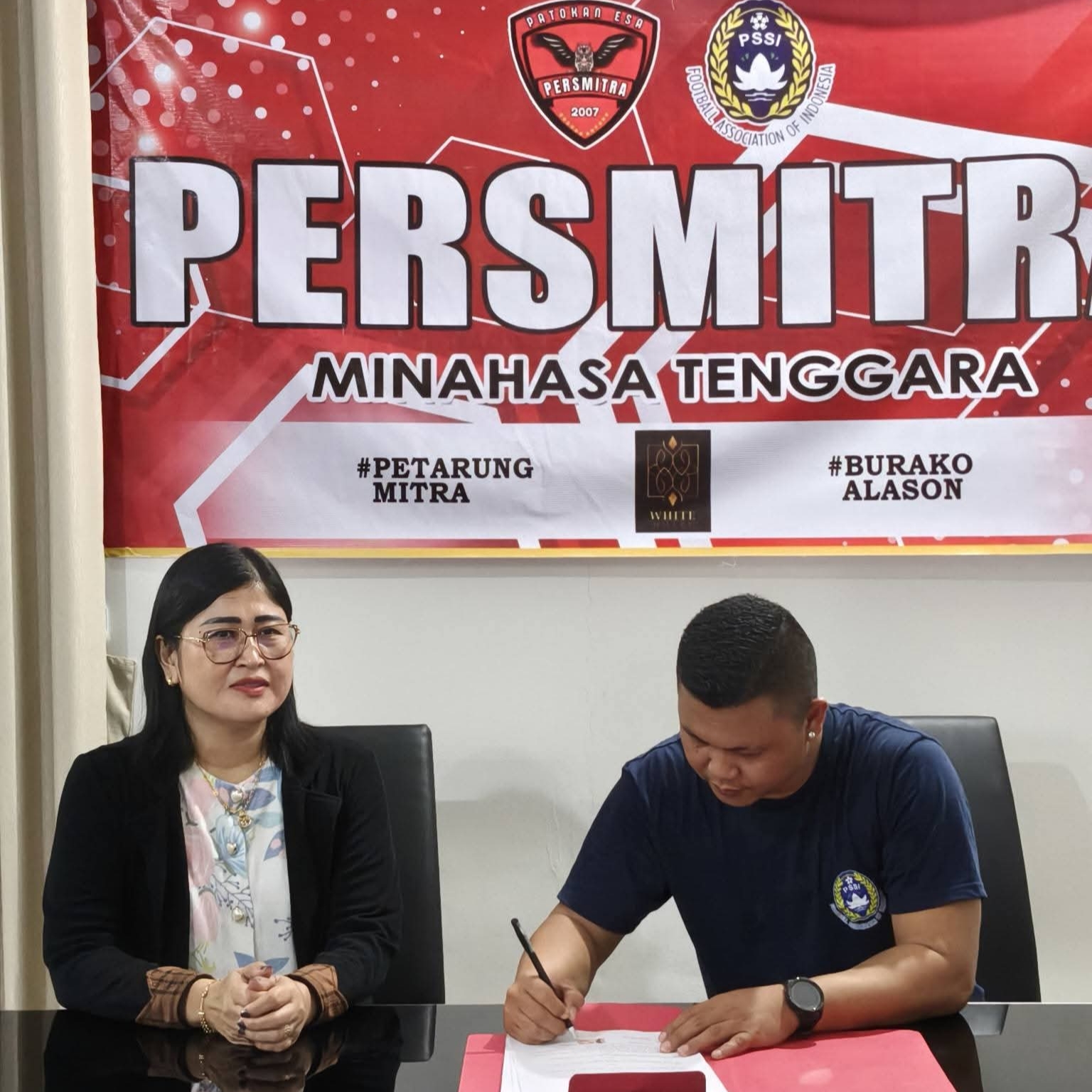 Dalam tanda tangan kontrak tersebut Ketua PersMitra Stevi Keintjem di wakili Oleh Manajer PersMitra Nurbaya Supit.