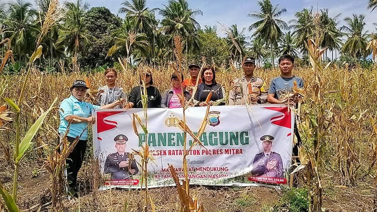 NPM, Mitra – Kapolsek Ratatotok IPDA Tengku Said Hafiz STr.K MH bersama Camat Yolanda Lea Sumual SKM MKes melaksanakan panen jagung di tempat perkebunan tanjung desa Basaan dua, Jumat (30/01/2026).