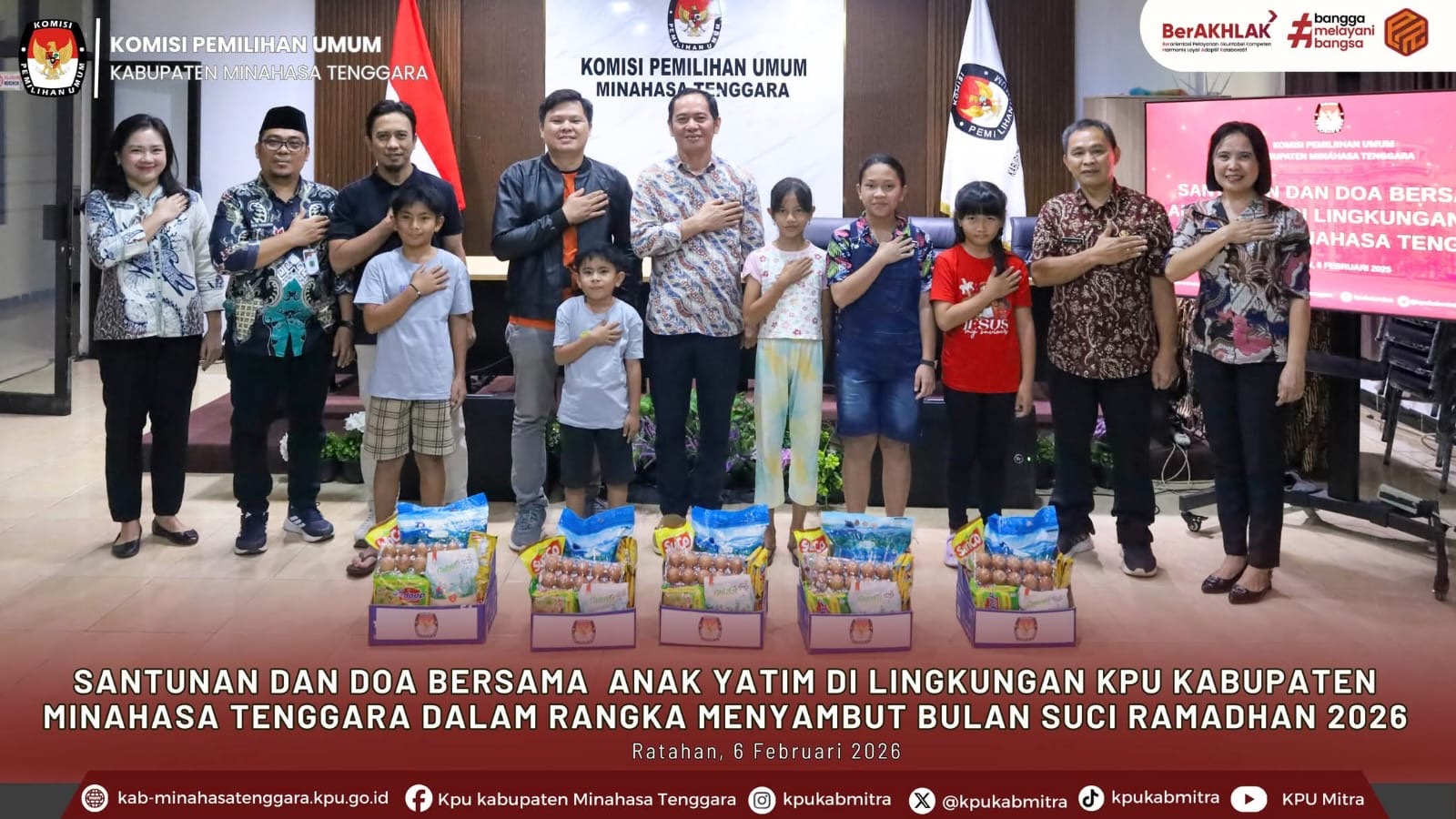NPM, Ratahan – Komisi Pemilihan Umum (KPU) Kabupaten Minahasa Tenggara menggelar kegiatan Santunan dan Doa Bersama Anak Yatim dalam rangka menyambut Bulan Suci Ramadhan. Kegiatan ini dilaksanakan di lingkungan Kantor KPU Kabupaten Minahasa Tenggara, Jumat (06/02/2026).