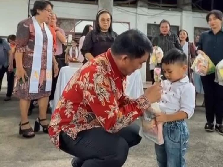 Di tengah kesibukan dan dinamika pembangunan daerah, pemandangan seorang kepala daerah berdiri di antara anak-anak gereja.