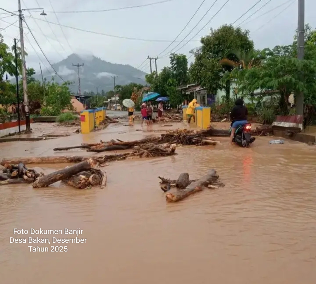 Informasi dirangkum, selama tahun 2025 hingga tahun 2026, Desa Bakan 3 kali diterjang banjir.