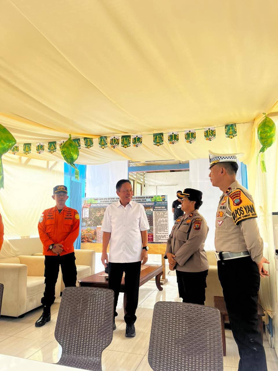 NPM, Amurang – Bupati Minahasa Selatan Franky Donny Wongkar, SH, melakukan peninjauan ke Pos Pengamanan Idul Fitri Polres Minahasa Selatan yang berada di Resting Area Maruasey, Kecamatan Tumpaan, Sabtu (14/3/2026).