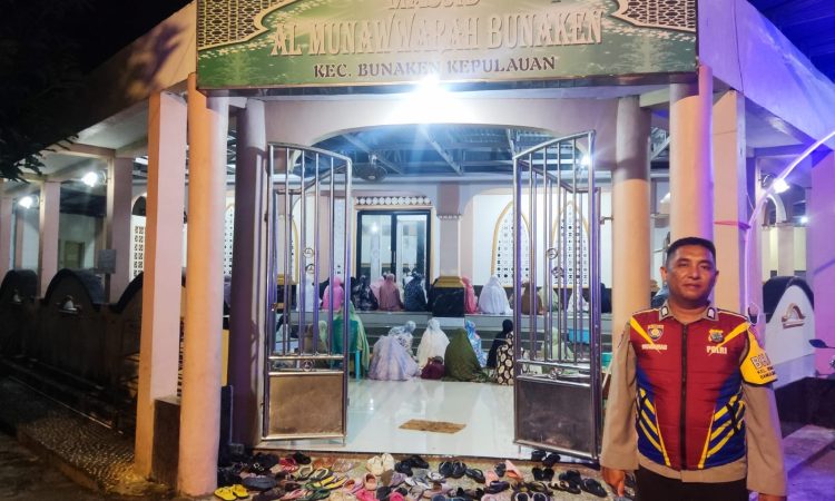 NPM, MANADO – Personel Polsek Pulau Bunaken melaksanakan kegiatan patroli dan pengamanan ibadah Sholat Tarawih di wilayah hukumnya, Selasa (17/3/2026) malam.