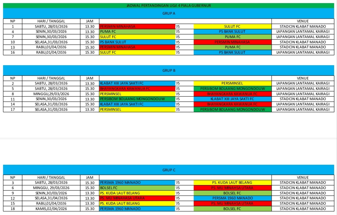 NPM, Manado – Liga 4 Indonesia, Sulawesi Utara Piala Gubernur Yulius Selvanus Komaling (YSK) menghentak jagat Bumi Nyiur Melambai.
