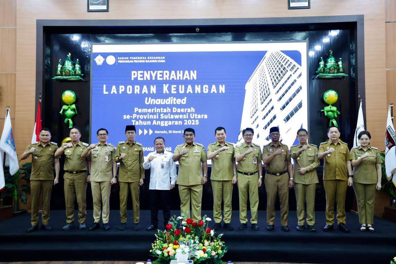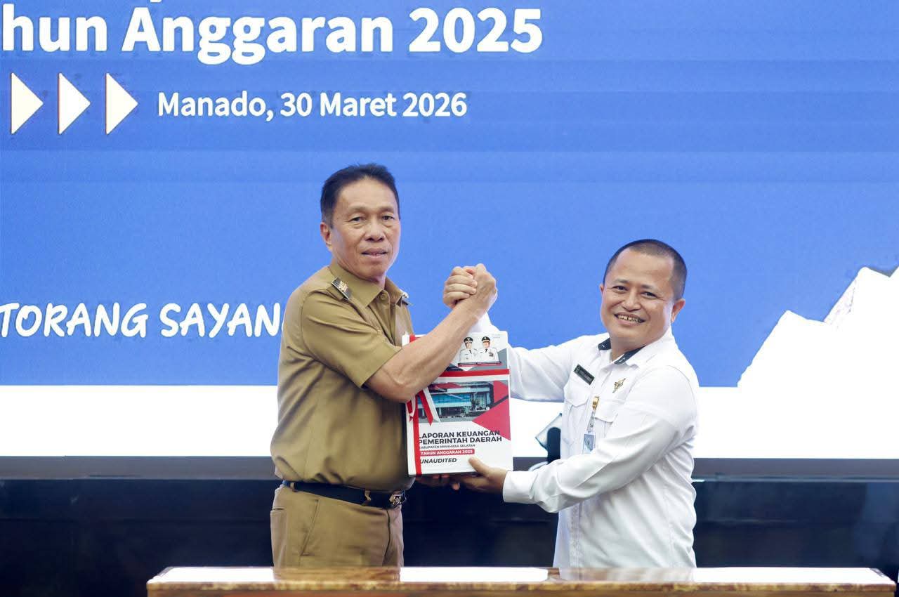NPM, Amurang — Bupati Minahasa Selatan Franky Donny Wongkar S.H, menghadiri kegiatan penyerahan Laporan Keuangan Pemerintah Daerah (LKPD) Unaudited Tahun Anggaran 2025 se-Provinsi Sulawesi Utara yang digelar di Kantor Badan Pemeriksa Keuangan (BPK) Perwakilan Provinsi Sulawesi Utara, Senin (30/3/2026).