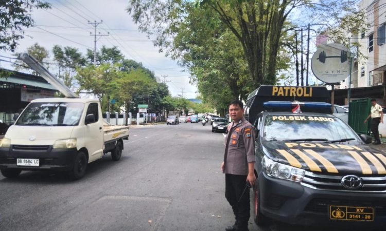 Personel Polsek Sario tampak aktif melakukan pengaturan lalu lintas, memberikan imbauan kepada pengendara.