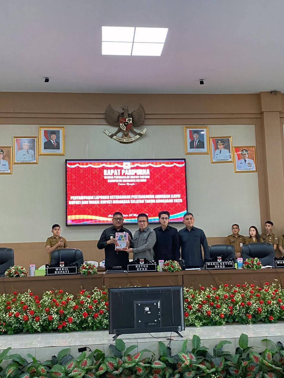 Rapat paripurna yang digelar di Ruang Rapat DPRD Kabupaten Minahasa Selatan tersebut dihadiri Wakil Bupati Theodorus Kawatu mewakili Bupati Minahasa Selatan, sebagai bagian dari agenda resmi penyampaian laporan kinerja pemerintahan daerah selama satu tahun anggaran.