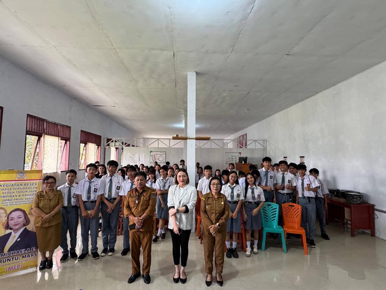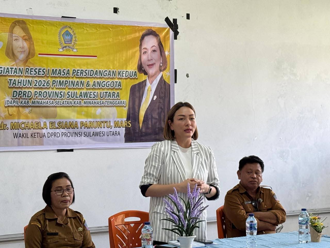 NPM, Amurang — Wakil Ketua DPRD Provinsi Sulawesi Utara dr. Michaela Elsiana Paruntu MARS, melaksanakan kegiatan Reses I Masa Persidangan II Tahun 2026 di SMK Negeri 1 Tareran, Kabupaten Minahasa Selatan, Selasa (31/3/2026), sebagai upaya menyerap langsung aspirasi masyarakat, khususnya di sektor pendidikan.
